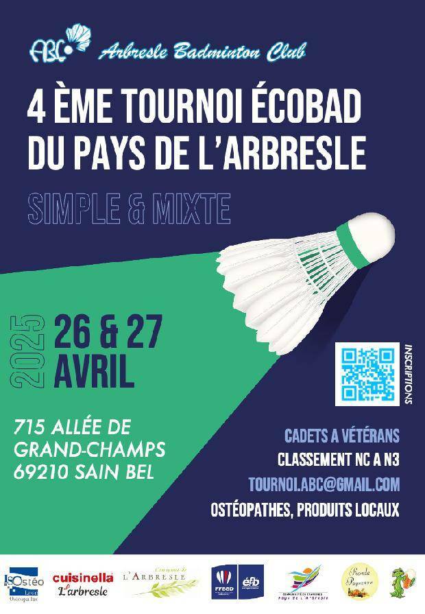 4ème tournoi Ecobad de Simple et Mixte du pays de l’Arbresle les 26 et 27 avril 2025
